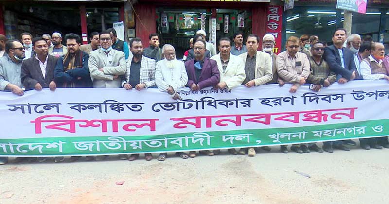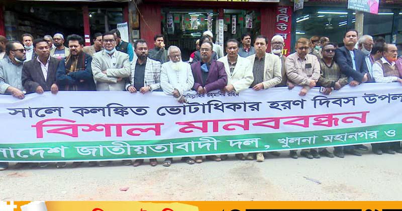 কেন্দ্র ঘোষিত কর্মসূচি অনুযায়ী খুলনায় বিএনপির মানববন্ধন অনুষ্ঠিত হয়েছে।