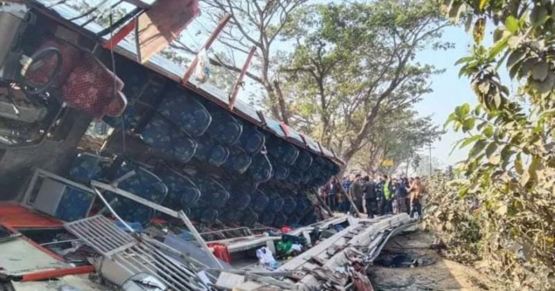 সিরাজগঞ্জের উল্লাপাড়া উপজেলার সলঙ্গায় বাস উল্টে ভ্যানের ওপর পড়ে নারীসহ চার জন নিহত হয়েছেন। এতে আহত হয়েছেন আরও ১০ জন। শুক্রবার (৩১ ডিসেম্বর) সকাল ১০টায় হাটিকুমরুল-বনপাড়া মহাসড়কের সলঙ্গা থানার গোঁজা ব্রিজ এলাকায় এই দুর্ঘটনা ঘটে।