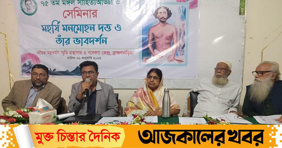 অদ্বৈত মল্লবর্মণ স্মৃতি গ্রন্থাগার ও গবেষণা কেন্দ্রের আয়োজনে মহর্ষি মনোমোহন দত্ত ও তার ভাবদর্শন শীর্ষক এক সেমিনার গত শুক্রবার (৩১ জানুয়ারি) বিকাল ৪টায় অনুষ্ঠিত হয়েছে।