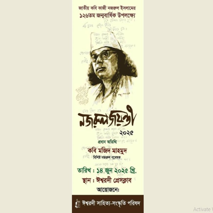 পাবনার ঈশ্বরদী সাহিত্য সংস্কৃতি পরিষদ আজ শনিবার (১৪ জুন) উদযাপন করবে নজরুল জয়ন্তী-২০২৫। এ উপলক্ষে আলোচনা সভায় নজরুল-মানস ও দর্শন নিয়ে মূল বক্তব্য রাখবেন কবি মজিদ মাহমুদ।