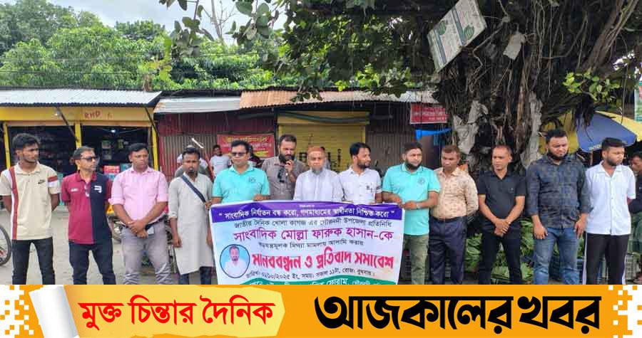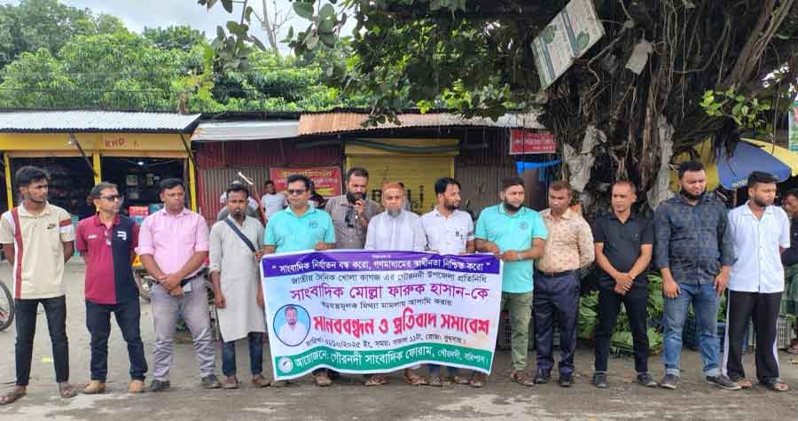 সাংবাদিক নির্যাতন বন্ধ করো,স্বাধীন গণমাধ্যম নিশ্চিত করো এই প্রতিপাদ্য বিষয় সামনে নিয়ে বরিশাল জেলার গৌরনদী উপজেলার জাতীয় দৈনিক খোলা কাগজের সংবাদদাতা সাংবাদিক মোল্লা ফারুক হাসানের বিরুদ্ধে ষড়যন্ত্র মুলক মিথ্যা মামলা প্রত্যাহারের দাবিতে গৌরনদী সাংবাদিক ফোরামের পক্ষ থেকে ১ লা অক্টোবর রোজ বুধবার বেলা ১১ ঘটিকায় গৌরনদী বাসস্ট্যান্ডে মানব বন্ধন ও প্রতিবাদ সমাবেশ অনুষ্ঠিত হয়।