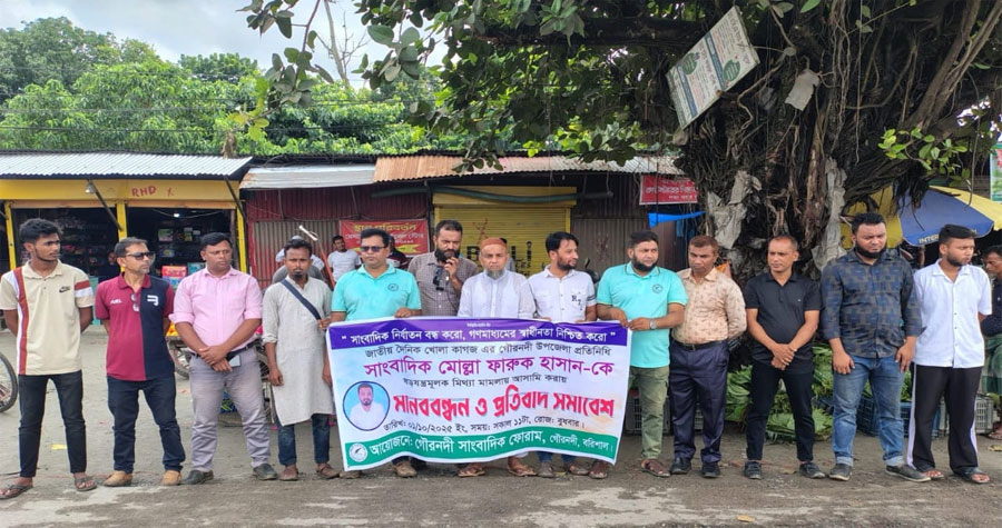 ‘সাংবাদিক নির্যাতন বন্ধ করো, স্বাধীন গণমাধ্যম নিশ্চিত করো’ এই প্রতিপাদ্য বিষয় সামনে নিয়ে বরিশালের গৌরনদী উপজেলার জাতীয় দৈনিক খোলা কাগজের সংবাদদাতা সাংবাদিক মোল্লা ফারুক হাসানের বিরুদ্ধে ষড়যন্ত্রমূলক মিথ্যা মামলা প্রত্যাহারের দাবিতে গৌরনদী সাংবাদিক ফোরামের পক্ষ থেকে বুধবার (১ অক্টোবর) বেলা ১১টায় গৌরনদী বাসস্ট্যান্ডে মানববন্ধন ও প্রতিবাদ সমাবেশ অনুষ্ঠিত হয়।
