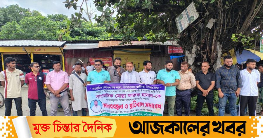 আয়োজিত মানববন্ধন ও প্রতিবাদ সমাবেশে উপস্থিত সাংবাদিকদের পক্ষ থেকে আগামী ২৪ ঘন্টার মধ্যে নিরপেক্ষ তদন্ত সাপেক্ষে সাংবাদিক মোল্লা ফারুক হাসানের বিরুদ্ধে ষড়যন্ত্রমূলক মিথ্যা মামলা প্রত্যাহারের দাবি জানানো হয়।