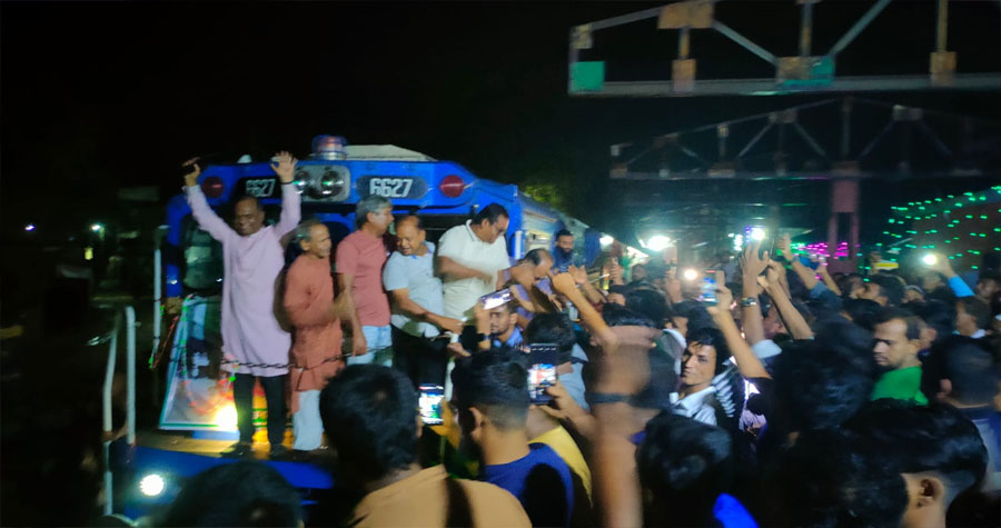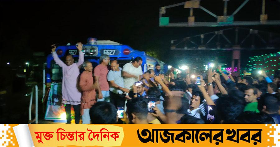 ট্রেন থামতেই প্ল্যাটফর্মে উচ্ছ্বাসের বিস্ফোরণ ঘটে। আন্দোলনকারীরা ফুল দিয়ে বরণ করে নেন লোকোমাস্টার, সহকারী লোকোমাস্টার ও পরিচালককে। সবার হাতে তুলে দেওয়া হয় খাবার। শুধু কর্মকর্তারাই নয়, যাত্রীদেরও ফুল ও আপ্যায়নে বরণ করা হয়। এমন আয়োজন দেখে ট্রেন কর্তৃপক্ষও আবেগাপ্লুত হয়ে পড়েন।