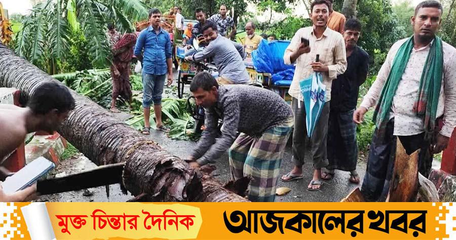 স্থানীয় বাসিন্দারা জানায়, বিকেল ৪টার পর আকাশ কালো মেঘে ঢেকে যায়। শুরু হয় প্রবল বেগে ঝড়, সঙ্গে মেঘের গর্জন। এর কিছুক্ষণ পর শুরু হয় মুষলধারে বৃষ্টি। এতে লণ্ডভণ্ড হয় ঘরবাড়ি-দোকানপাট ও গাছপালা।