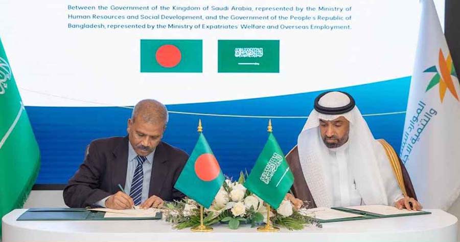 সোমবার (৬ অক্টোবর) রিয়াদে বাংলাদেশের পক্ষে প্রবাসী কল্যাণ ও বৈদেশিক কর্মসংস্থান মন্ত্রণালয়ের উপদেষ্টা ড. আসিফ নজরুল এবং সৌদি আরবের পক্ষে মানবসম্পদ ও সামাজিক উন্নয়ন মন্ত্রণালয়ের মন্ত্রী ইঞ্জিনিয়ার আহমেদ বিন সোলাইমান আল-রাজী চুক্তি স্বাক্ষর করেন।