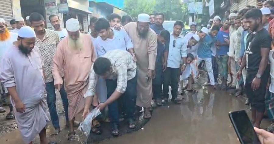 খানাখন্দে ভরা সড়ক সংস্কারের দাবিতে কুমিল্লার দেবীদ্বার-চান্দিনা সড়কে মাছের ছেড়ে প্রতীকী প্রতিবাদ জানালেন জাতীয় নাগরিক পার্টির (এনসিপি) দক্ষিণাঞ্চলের মুখ্য সংগঠক হাসনাত আবদুল্লাহ।