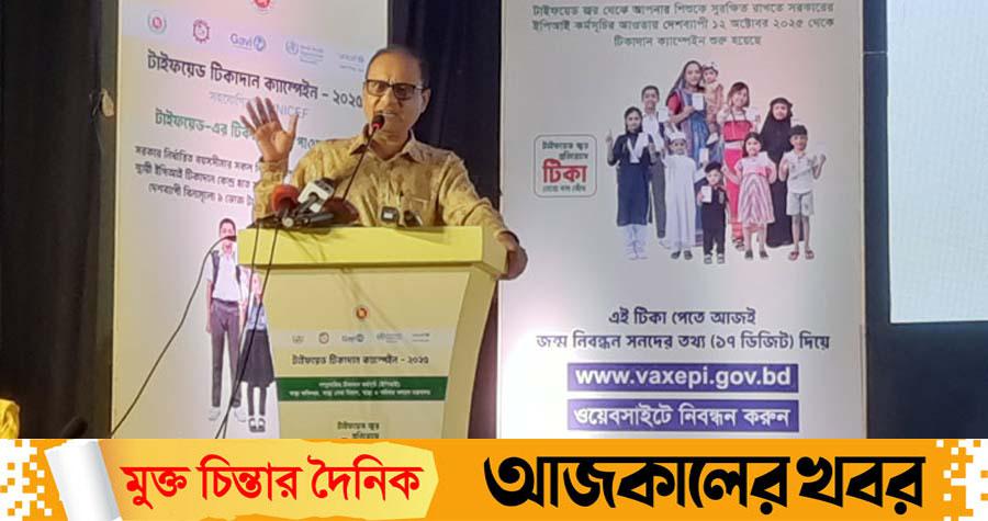 রবিবার (১২ অক্টোবর) সকালে রাজধানীর মোহাম্মদপুরে ঢাকা রেসিডেন্সিয়াল মডেল কলেজে টাইফয়েড টিকাদান ক্যাম্পেইন উদ্বোধন অনুষ্ঠানে প্রধান অতিথির বক্তব্যে তিনি এ কথা বলেন।