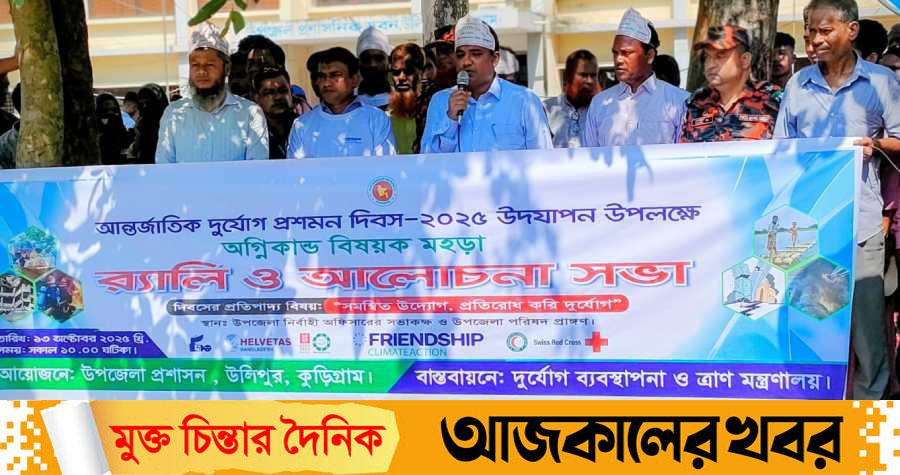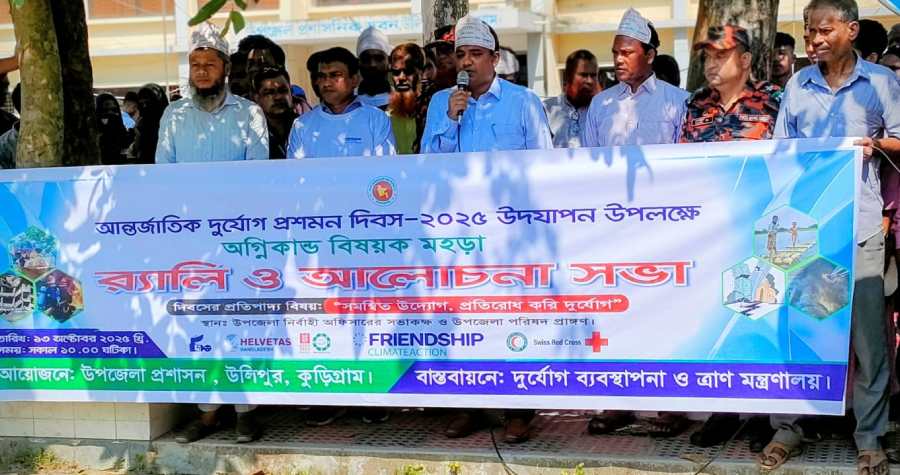 ‘সমন্বিত উদ্যোগ, প্রতিরোধ করি দুর্যোগ’ এ প্রতিপাদ্যকে সামনে রেখে কুড়িগ্রামের উলিপুরে দুর্যোগ ব্যবস্থাপনা অধিদপ্তর ও উপজেলা প্রশাসনের উদ্যোগে জাতীয় দুর্যোগ প্রশমন দিবস উদযাপন করা হয়েছে। এ উপলক্ষে ফায়ার সার্ভিস কর্মিদের মহড়া প্রদর্শন ও আলোচনা সভা অনুষ্ঠিত হয়।