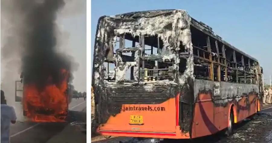 পুলিশ জানায়, বিকেল ৩টার দিকে জয়সালমের থেকে ছাড়ার পর বাসটির পেছনের দিক থেকে ধোঁয়া উঠতে দেখা যায়। চালক দ্রুত রাস্তার পাশে থামালেও অল্প সময়ের মধ্যেই আগুন পুরো বাসে ছড়িয়ে পড়ে।