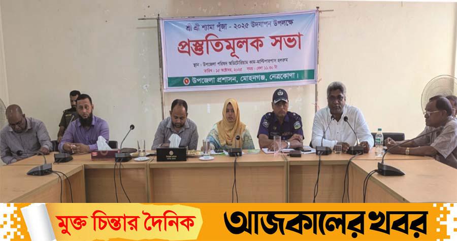 নেত্রকোণার মোহনগঞ্জ উপজেলা প্রশাসনের উদ্যোগে উপজেলা পরিষদ অডিটোরিয়াম কাম মাল্টিপারপাস হলরুমে বুধবার সাড়ে ১১টার দিকে শ্রীশ্রী শ্যামা পূঁজা- ২০২৫ উদযাপন উপলক্ষে প্রস্তুতিমূলক সভার আয়োজন করা হয়।