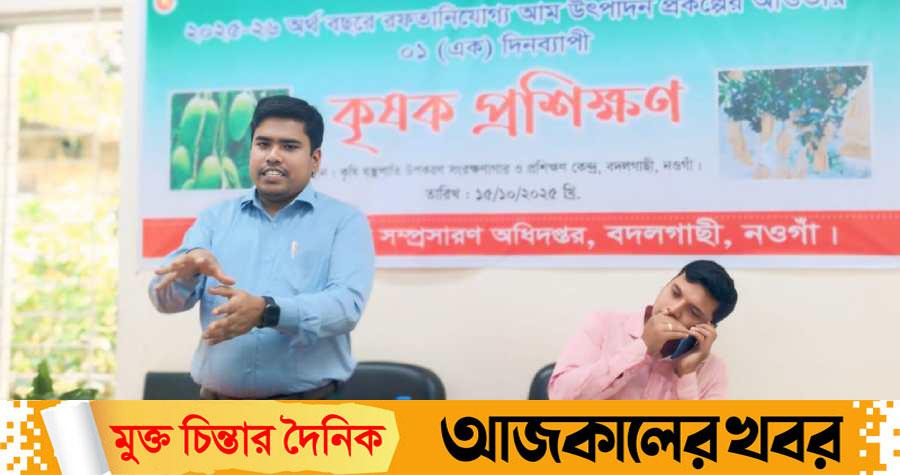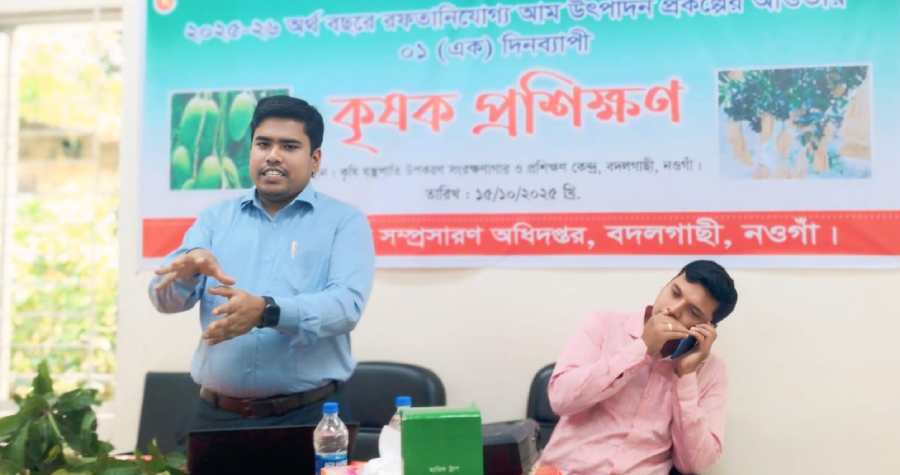 বদলগাছীতে ‘কৃষক প্রশিক্ষণ’ এই প্রতিপাদ্যকে সামনে রেখে (২০২৫-২০২৬) অর্থ বছরে রফতানিযোগ্য আম উৎপাদন প্রকল্পের আওতায় এক দিনব্যাপী কৃষক প্রশিক্ষণ অনুষ্ঠিত হয়েছে।