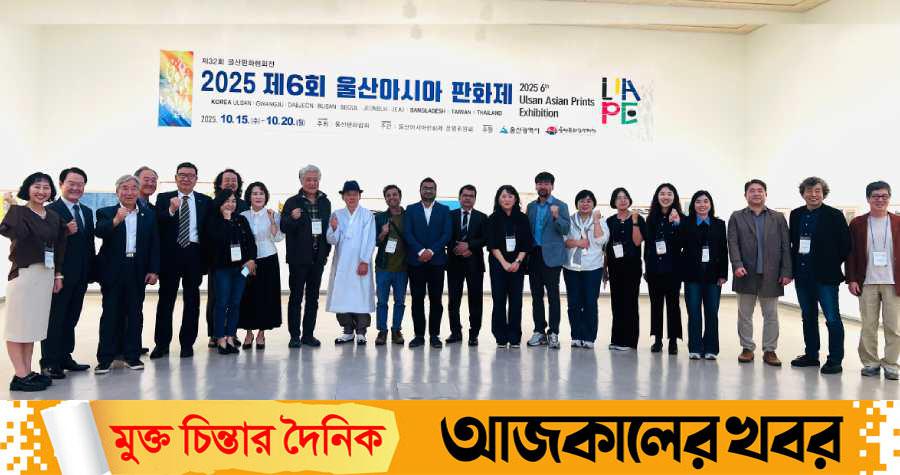 কোরিয়ার ষষ্ঠ উলসান এশিয়ান প্রিন্টমেকিং প্রদর্শনী-২০২৫ বুধবার (১৫ অক্টোবর) শুরু হয়েছে। দেশটির উলসান আর্ট অ্যান্ড কালচার সেন্টার-এ আয়োজিত প্রদর্শনীতে দক্ষিণ কোরিয়া, থাইল্যান্ড, তাইওয়ান এবং বাংলাদেশের খ্যাতিমান একঝাঁক ছাপচিত্রীর কাজ প্রদর্শিত হচ্ছে। এ প্রদর্শনীর আয়োজক উলসান প্রিন্ট অ্যাসোসিয়েশন।