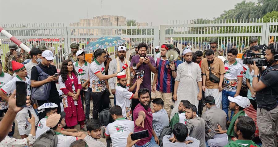 জুলাই অভ্যুত্থানে আহত ছাত্র-জনতাকে রাষ্ট্রীয় স্বীকৃতি ও জুলাই আহত বীর হিসেবে রাষ্ট্রীয় স্বীকৃতি দেওয়াসহ ৩ দফা দাবিতে জাতীয় সংসদের গেটের সামনে অবস্থান নিয়েছেন জুলাই যোদ্ধারা।