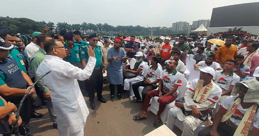 মঞ্চের সামনে থেকে ‘জুলাই যোদ্ধাদের’ সরিয়ে দিচ্ছে পুলিশ