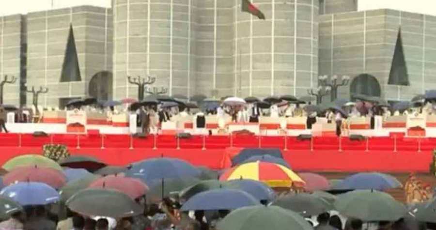 অনুষ্ঠানস্থলে উপস্থিত নেতারা মঞ্চে বসার আগে একে অপরের সঙ্গে কুশল বিনিময় করেন। দক্ষিণ প্লাজার চারপাশে নিরাপত্তা বলয় ঘিরে রেখেছে পুলিশ ও আইনশৃঙ্খলা বাহিনীর সদস্যরা।