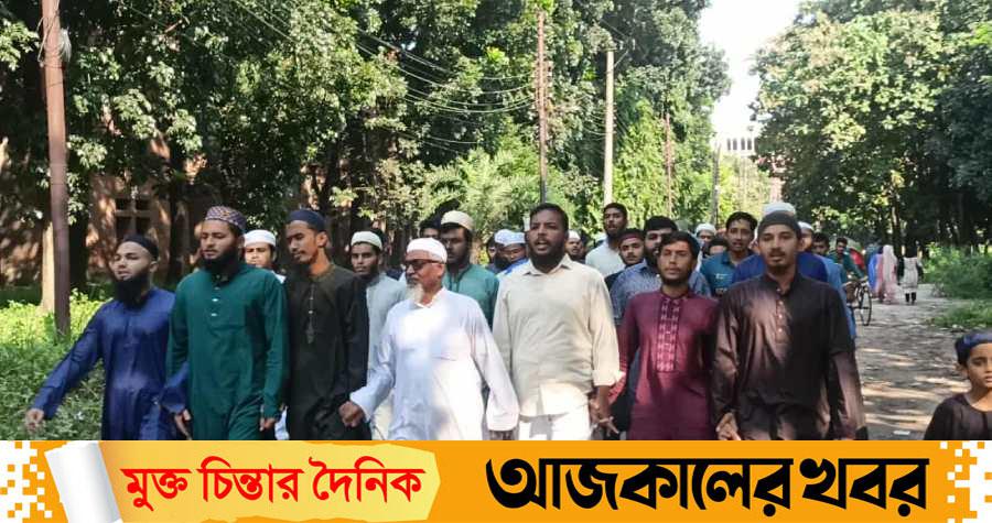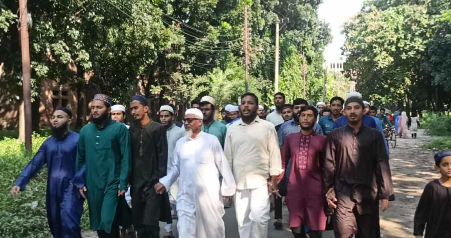 শুক্রবার (২৪ অক্টোবর) বাদ জুমা বিশ্ববিদ্যালয়ের বটতলায় থেকে শুরু হয়ে ক্যাম্পাসের বিভিন্ন সড়ক প্রদক্ষিণ করে পুনরায় বটতলায় এসে সংক্ষিপ্ত সমাবেশ করে শিক্ষার্থীরা। এ সময় তাদের ‘ব্যান ব্যান, ইস্কন’, ‘ইস্কনের কালো হাত, ভেঙে দাও গুড়িয়ে দাও’, ‘অপহরণ ধর্ষণ, ইস্কন ইস্কন’, ‘স্বৈরাচারের সঙ্গী, ইস্কন তুই জঙ্গি’ প্রভৃতি স্লোগান দিতে দেখা যায়।