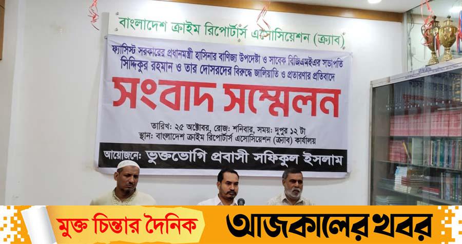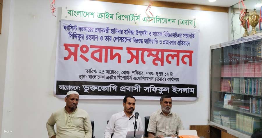 সাবেক প্রধানমন্ত্রী শেখ হাসিনার বাণিজ্য উপদেষ্টা ও বিজিএমইএ’র সাবেক সভাপতি সিদ্দিকুর রহামান ও তার সহযোগীদের বিরুদ্ধে জালিয়াতি ও প্রতারণার প্রতিবাদ জানিয়েছেন ভুক্তভোগী ডেভেলপার ব্যবসায়ী সফিকুল ইসলাম।