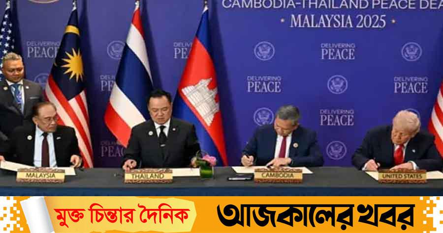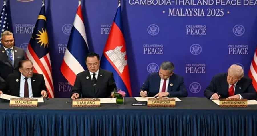 যুক্তরাষ্ট্রের প্রেসিডেন্ট ডোনাল্ড ট্রাম্পের উপস্থিতিতে থাইল্যান্ড ও কম্বোডিয়ার মধ্যে যুদ্ধবিরতি চুক্তি সই হয়েছে। মালয়েশিয়ায় হওয়া এ চুক্তিতে স্বাক্ষর করেছেন ট্রাস্প নিজেও। মালয়েশিয়ার প্রধানমন্ত্রী আনোয়ার ইব্রাহিমও এসময় উপস্থিতিত ছিলেন। খবর আল জাজিরার।