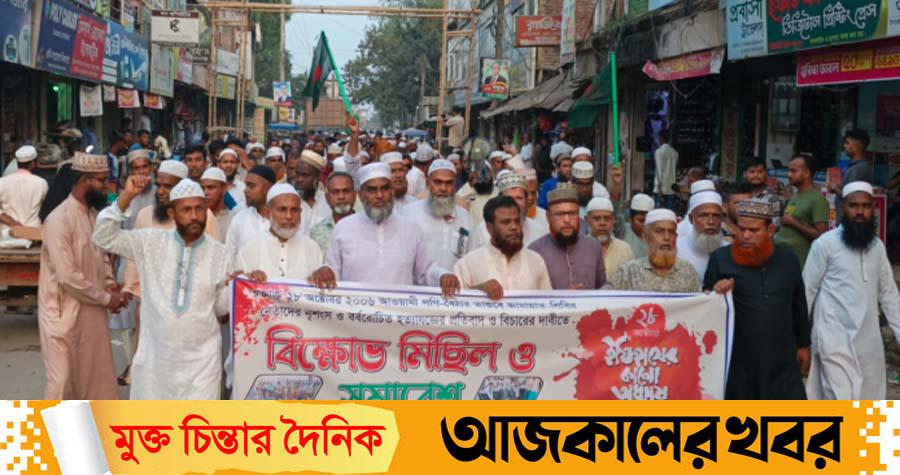 মঙ্গলবার বিকাল পাঁচটায় উপজেলা জামায়াতে ইসলামী আয়োজিত একটি বিশাল মিছিল উপজেলা পরিষদ চত্ত্বর থেকে শুরু হয়ে শহরের গুরুত্বপূর্ণ সড়ক প্রদক্ষিণ শেষে স্থানীয় তালতলা চত্ত্বরে গিয়ে সমাবেশ করে।