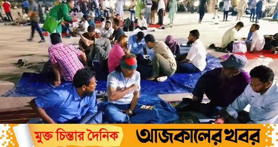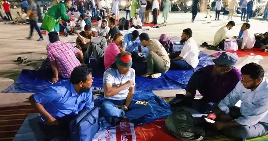 শনিবার (৮ নভেম্বর) রাতে কেন্দ্রীয় শহীদ মিনার ঘুরে দেখা যায়, শিক্ষকরা সঙ্গে আনা পলিথিন, মাদুর ও বিছানার চাদর বিছিয়ে খোলা আকাশের নিচে শুয়ে আছেন। অনেকে দিনভর ঘটে যাওয়া নানা বিষয় নিয়ে আলোচনা করছেন। অনেকে আবার ক্লান্ত-শ্রান্ত শরীর এলিয়ে ঘুমিয়ে পড়েছেন।