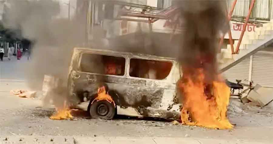 উত্তরায় মাইক্রোবাসে আগুন