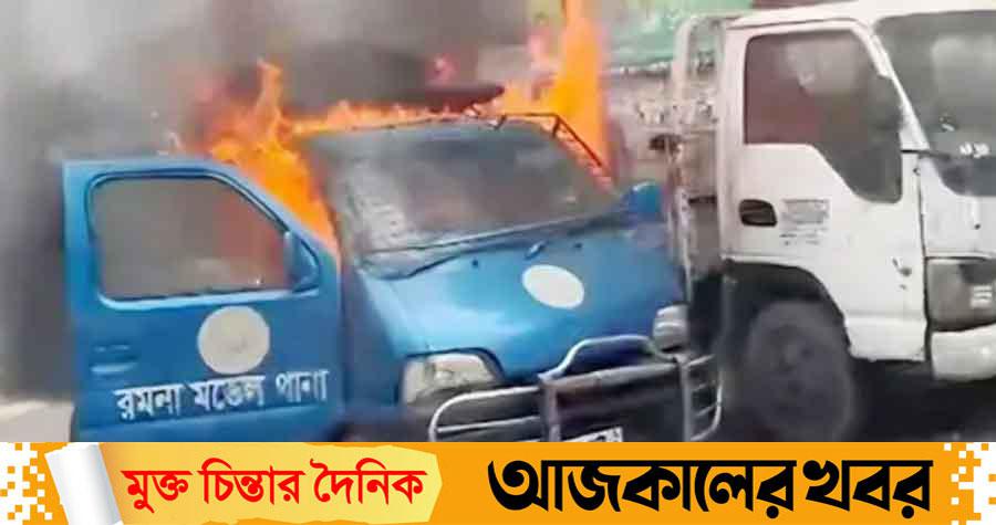 এবার রমনা থানার সামনে পুলিশের গাড়িতে আগুন