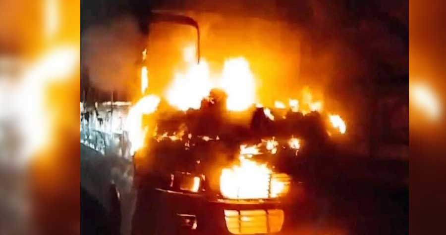 দগ্ধ চালক তাবেজ খান (৪৫) সদর উপজেলার বারাইবিকুরা গ্রামের আবুল হোসেনের ছেলে। রাতে তিনি গাড়িতেই ঘুমিয়ে ছিলেন।