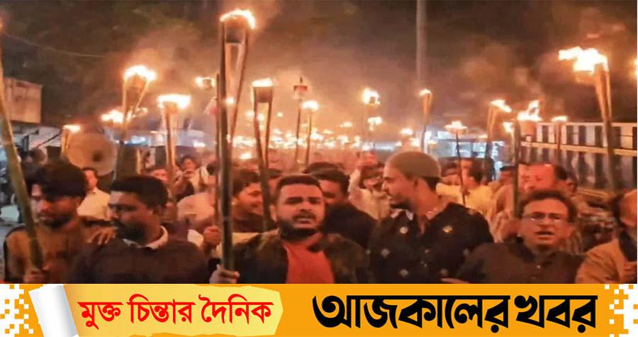 বাজিতপুরে মশাল মিছিল শুরুর আগে পৌরশহরের রেজু মার্কেটের সংক্ষিপ্ত সমাবেশ হয়।