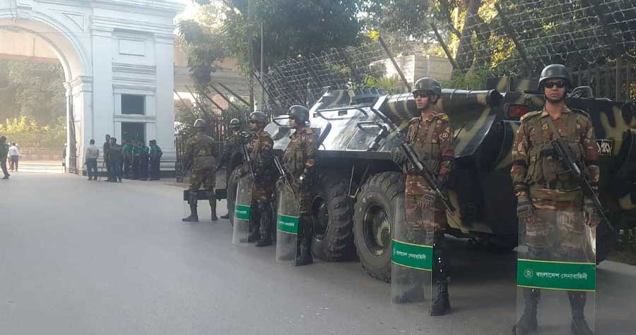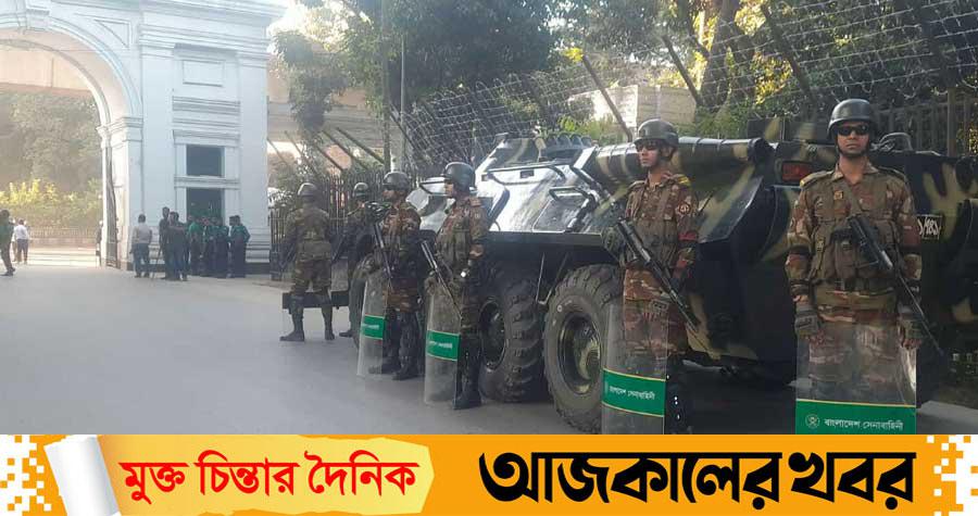 সরেজমিনে দেখা যায়, সুপ্রিম কোর্টের চার দিকে নিরাপত্তা বাহিনীর সদস্যরা কড়া নিরাপত্তায় মোড়ানো হয়েছে। মাজার গেটের সামনে সেনাবাহিনীকে অবস্থান নিতে দেখা যায়। আর আন্তর্জাতিক অপরাধ ট্রাইব্যুনালের সামনে ও ভেতরে পুলিশ র্যাবসহ আইনশৃঙ্খলা বাহিনীর নিরাপত্তা জোরদার করা হয়েছে।