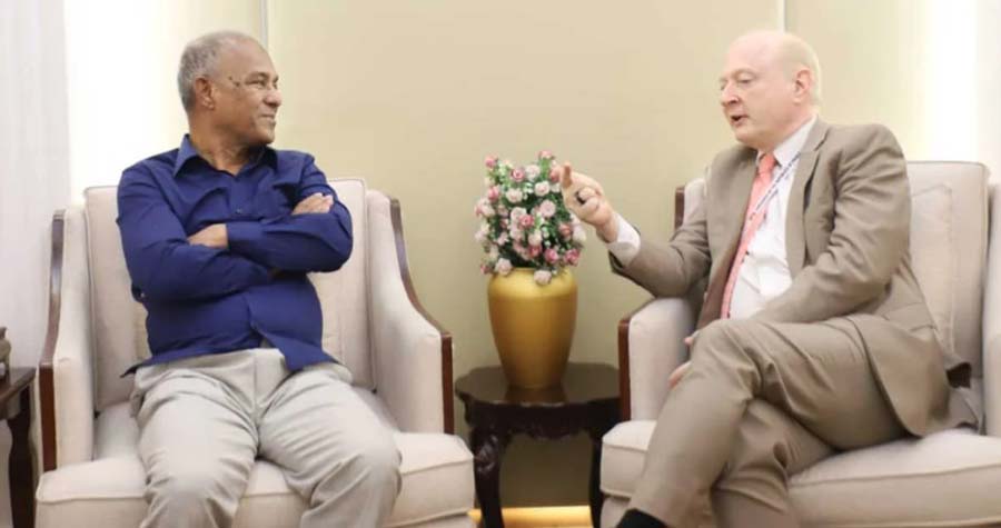 শেখ হাসিনার রায় পরবর্তী পরিস্থিতি সম্পর্কে রাষ্ট্রদূত জানতে চাইলে উপদেষ্টা বলেন, আইনশৃঙ্খলা পরিস্থিতি স্বাভাবিক আছে। ছোটখাটো দু’একটি বিচ্ছিন্ন ঘটনা ছাড়া পরিস্থিতি শান্ত রয়েছে। কেউ আইনশৃঙ্খলা পরিস্থিতির বিঘ্ন ঘটাতে চাইলে কঠোর হস্তে দমন করা হবে।