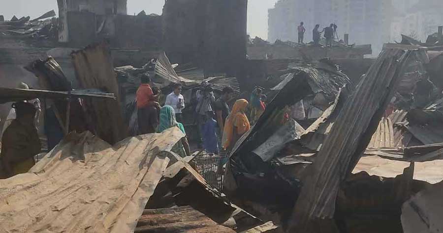 বুধবার (২৬ নভেম্বর) সকালে সরেজমিনে ঘুরে দেখা গেছে, বস্তির বিশাল একটি অংশে এখন পোড়া কাঠ, টিন ও ছাইয়ের স্তূপ। সেখানে এখনো ধোঁয়া উড়ছে। ক্ষতিগ্রস্তরা তাদের পুড়ে যাওয়া ঘরের ধ্বংসস্তূপের কাছাকাছি যাওয়ার চেষ্টা করছেন। অনেকেই আশপাশে ত্রিপল, পলিথিন ও কাপড়-কম্বল বিছিয়ে অস্থায়ী আশ্রয়স্থল তৈরি করেছেন। তবে দুর্গতদের মধ্যে শিশু ও বৃদ্ধরাই সবচেয়ে বেশি কষ্টে আছেন। এদের মধ্যে বহু মানুষ ভিজে যাওয়া কাপড় শুকিয়ে নিচ্ছেন এবং পোড়া মালামালের মধ্যে হাতড়ে বেড়াচ্ছেন কোনো কিছু অবশিষ্ট আছে কি না দেখতে।