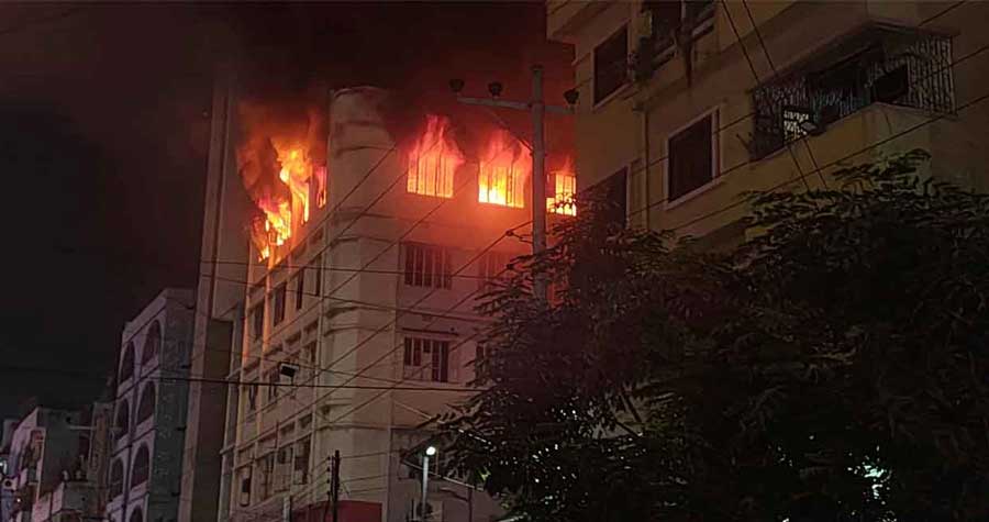 ফায়ার সার্ভিস সূত্র জানিয়েছে, রাতে দিলুরোডের ওই ভবনের আগুন পাশের বস্তিতে ছড়িয়ে পড়ে।