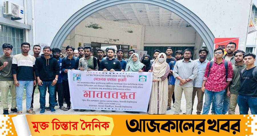 এরই প্রতিবাদে প্রাক-নিয়োগ জীবনবৃত্তান্ত যাচাই প্রক্রিয়ার সংস্কার, স্বচ্ছ জবাবদিহিতা নিশ্চিতকরণ এবং বঞ্চিত প্রার্থীদের দ্রুত নিয়োগের দাবিতে মানববন্ধন করেছে ইসলামী বিশ্ববিদ্যালয়ের আইন অনুষদের শিক্ষার্থীরা।