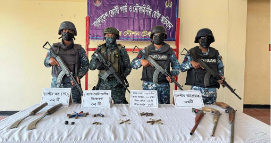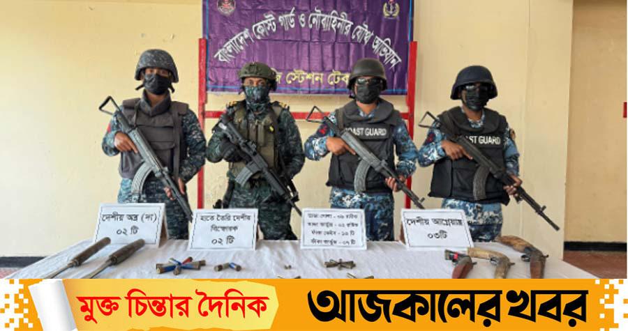 টেকনাফে কোস্ট গার্ড ও নৌবাহিনীর যৌথ অভিযানে বিপুল পরিমাণ গোলা-বারুদসহ দেশীয় আগ্নেয়াস্ত্র জব্দ করা হয়েছে।