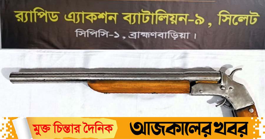 বিজ্ঞপ্তিতে র্যাব জানায়, মঙ্গলবার রাতে গোপন সংবাদের ভিত্তিতে পৌর এলাকার ভাদুঘর শান্তিনগরে ফোরলেন রাস্তার পাশে অভিযান চালিয়ে রাস্তার পাশের কাঁশফুল বাগানের ঝোপের ভিতর থেকে পরিত্যাক্ত অবস্থায় ১ টি বিদেশী পাইপগান উদ্ধার করা হয়। পাইপগানটি আকারে ছোট হওয়ায় এটি বহনে ও ব্যবহারে সুবিধা রয়েছে। পাইপগানটি নাশকতার কাজে ব্যবহার করা হতে পারে বলে ধারণা করা হচ্ছে।
