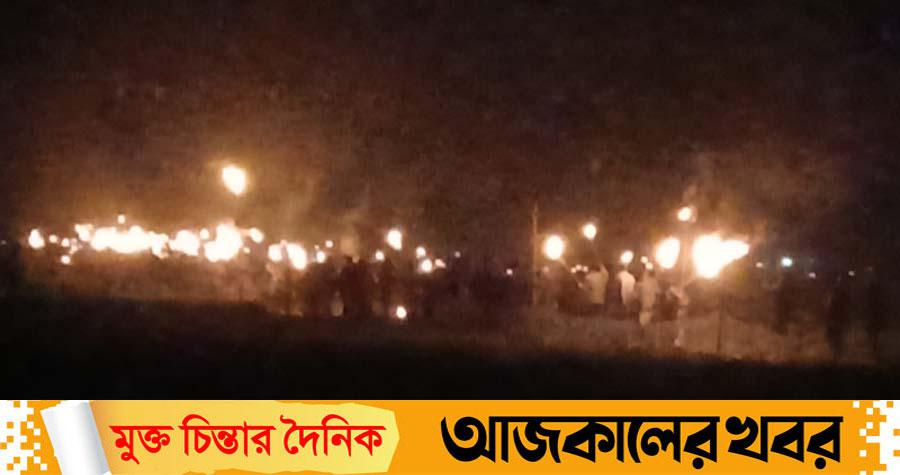এতে ক্ষিপ্ত হয়ে ওঠে ডিমলা, ডোমার ও জলঢাকা এই তিন উপজেলার বুড়ি তিস্তা এলাকার পাঁচটি মৌজার প্রায় ৭৫০টি পরিবারে বসবাসরত তিন হাজারেরও বেশি মানুষ। নদী খননের সরকারি সিদ্ধান্তের প্রতিবাদে শুক্রবার (৫ডিসেম্বর) সন্ধ্যার পর নীলফামারী জেলার ডিমলা সদর ইউনিয়নের বুড়ি তিস্তা ব্যারেজ এলাকার উজান কুটির ডাঙ্গায় ওই তিন উপজেলার পাঁচ গ্রামের প্রায় তিন হাজার মানুষ মশাল মিছিল বের করে প্রতিবাদ জানায়। মিছিলে কিশোর, নারী ও বৃদ্ধসহ সর্বস্তরের মানুষ অংশ নেন।