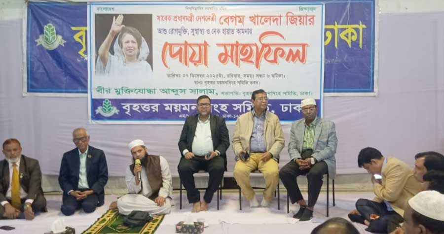 বিএনপি চেয়ারপারসন ও তিনবারের সাবেক প্রধানমন্ত্রী বেগম খালেদা জিয়ার দ্রুত আরোগ্য এবং সুস্থতা কামনা করে দোয়া মাহফিল করেছে বৃহত্তর ময়মনসিংহ সমিতি, ঢাকা। আজ রবিবার (৭ ডিসেম্বর ২০২৫) সন্ধ্যায় রাজধানীর মিরপুরস্থ সমিতির ভবনে এ মাহফিল অনুষ্ঠিত হয়।