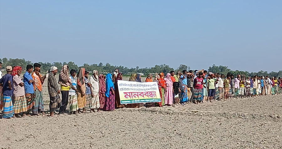 মানববন্ধন থেকে বক্তারা অবিলম্বে প্রশাসনের সরাসরি হস্তক্ষেপ, দখল বাজদের বিরুদ্ধে আইনি ব্যবস্থা এবং চরের জমির সুনির্দিষ্ট মালিকানা নিশ্চিত করার দাবি জানান। দাবি মানা না হলে বৃহত্তর আন্দোলনের হুঁশিয়ারি দেন তারা।