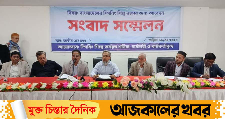 বৃহস্পতিবার (১১ ডিসেম্বর) জাতীয় প্রেসক্লাবে স্পিনিং শিল্প রক্ষার দাবিতে আয়োজিত এক সংবাদ সম্মেলনে এসব কথা বলেন এই শিল্পে কর্মরত শ্রমিক, কর্মকর্তা-কর্মচারীরা।