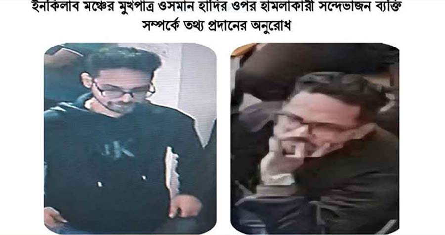 ইনকিলাব মঞ্চের মুখপাত্র ও ঢাকা-৮ আসনের সম্ভাব্য সংসদ সদস্য প্রার্থী ওসমান হাদির ওপর হামলাকারী সন্দেহভাজন ব্যক্তির ছবি প্রকাশ করেছে ঢাকা মহানগর পুলিশ (ডিএমপি)। ওই ব্যক্তি সম্পর্কে তথ্য দিলেই তথ্যদাতাকে পুরস্কার দেওয়া হবে বলে ঘোষণা করা হয়েছে।