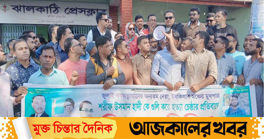 ইনকিলাব মঞ্চের মুখপাত্র ওসমান হাদিকে গুলি করার প্রতিবাদে নিজ জেলা ঝালকাঠিতে বিক্ষোভ মিছিল করেছে বিএনপি।