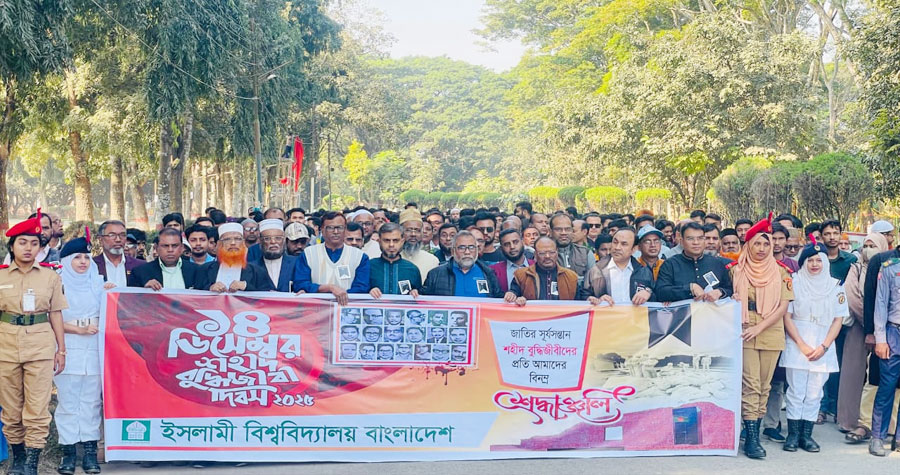 যথাযথ মর্যাদায় ইসলামী বিশ্ববিদ্যালয়ে (ইবি) শহীদ বুদ্ধিজীবী দিবস-২০২৫ পালিত হয়েছে। রবিবার (১৪ ডিসেম্বর) জাতীয় পতাকা ও কালো পতাকা উত্তোলন, কালো ব্যাচ ধারণ, শোক র্যালি, শ্রদ্ধাঞ্জলি নিবেদন ও দোয়া-মোনাজাতের মাধ্যমে দিবসটি পালন করে বিশ্ববিদ্যালয় কতৃপক্ষ।