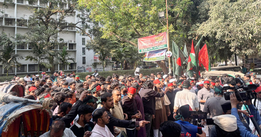 ইনকিলাব মঞ্চের মুখপাত্র ও ঢাকা-৮ আসনের সম্ভাব্য স্বতন্ত্র প্রার্থী ওসমান হাদিকে গুলি করে হত্যাচেষ্টায় জড়িত সন্ত্রাসীদের গ্রেপ্তারসহ তিন দফা দাবিতে স্বরাষ্ট্র উপদেষ্টার কার্যালয় ঘেরাওয়ের উদ্দেশ্যে ছাত্র-জনতাকে নিয়ে মার্চ শুরু করেছে ঢাকা বিশ্ববিদ্যালয় কেন্দ্রীয় ছাত্র সংসদ (ডাকসু)।