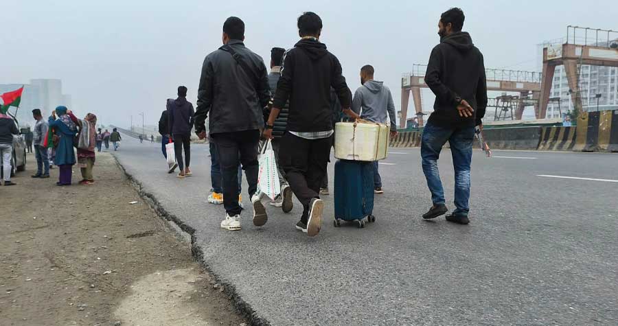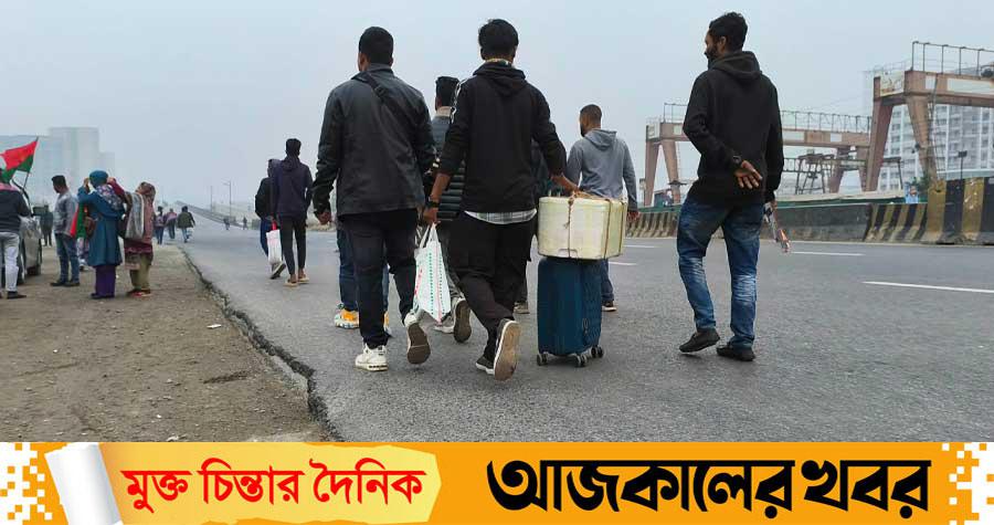 আরও দেখা গেছে, যানবাহনের অভাবে অনেকে লাগেজ সঙ্গে নিয়েই পায়ে হেঁটে রওনা হচ্ছেন গন্তব্যের উদ্দেশ্যে। কোনো কোনো প্রবাসী গাড়ি না পেয়ে মালামাল মাথায় তুলে হাঁটা ধরেছেন। গাড়ি না পেয়ে কেউ কেউ ছোট বাচ্চাসহ হেঁটে রওনা হয়েছেন।
