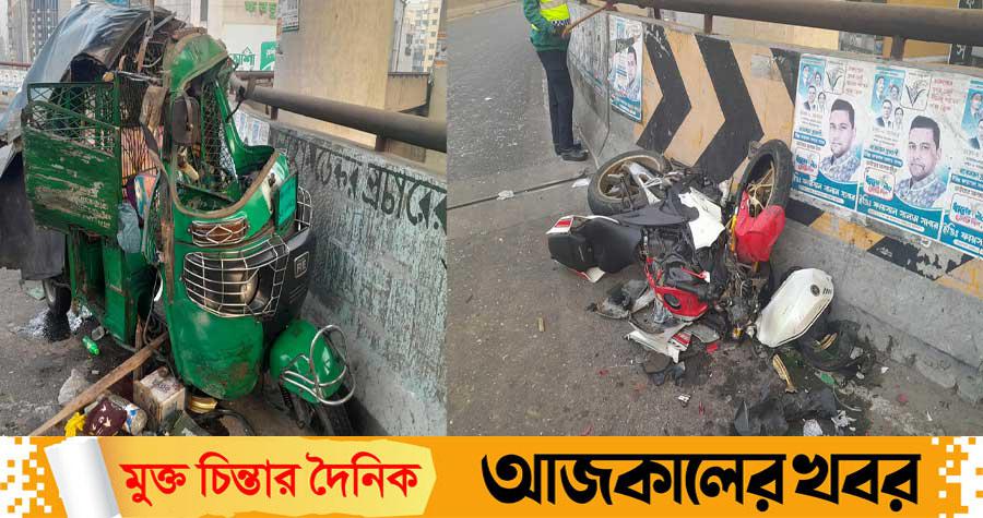 ফ্লাইওভারের ক্রসিংয়ে সংঘর্ষে অটোরিকশা চালক নয়ন তালুকদার (৭০) ও মোটরসাইকেল চালক ইয়াসিন আরাফাত আশিক (২১) গুরুতর আহত হন।