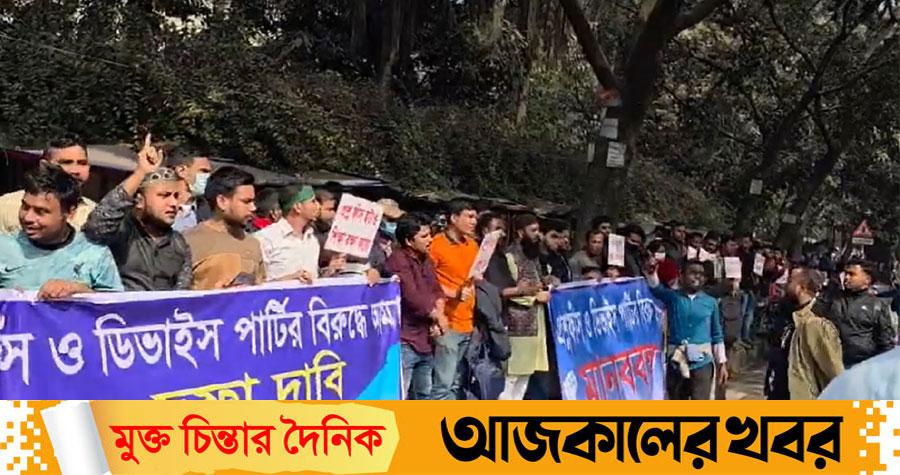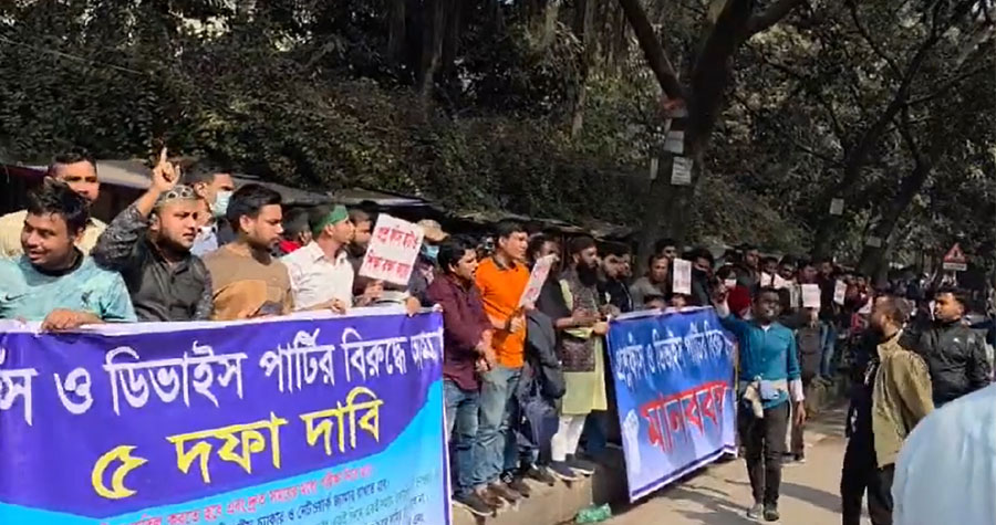 প্রশ্নফাঁস, ডিভাইসের মাধ্যমে জালিয়াতিসহ নানা অভিযোগে সরকারি প্রাথমিক বিদ্যালয়ের সহকারী শিক্ষক নিয়োগ পরীক্ষা বাতিলের দাবিতে বিক্ষোভ-সমাবেশ করেছেন একদল নিয়োগপ্রত্যাশী। একই সঙ্গে তারা পাঁচ দফা দাবি তুলে ধরেছেন। এ দাবি না মানা পর্যন্ত আন্দোলন চালিয়ে যাওয়া ঘোষণা দিয়েছেন।