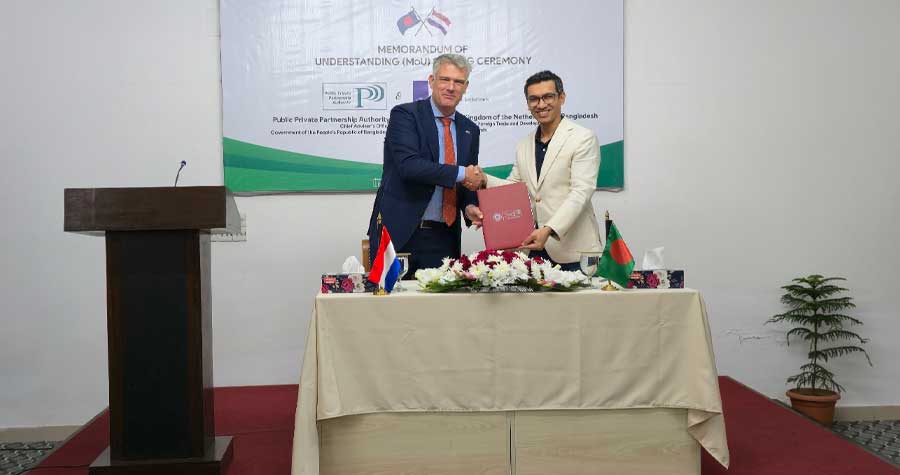 বাংলাদেশ সরকার ও নেদারল্যান্ডস সরকারের মধ্যে পাবলিক–প্রাইভেট পার্টনারশিপ (পিপিপি) খাতে সরকার-টু-সরকার (জি-টু-জি) সহযোগিতা জোরদার করতে একটি সমঝোতা স্মারক (এমওইউ) স্বাক্ষরিত হয়েছে। আজ আগারগাঁওয়ে পাবলিক–প্রাইভেট পার্টনারশিপ অথরিটি (পিপিপি) কার্যালয়ে এই চুক্তি স্বাক্ষর অনুষ্ঠিত হয়।