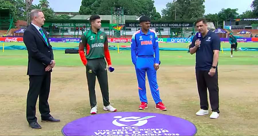 শনিবার (১৭ জানুয়ারি) কুইন্স স্পোর্টস ক্লাব মাঠে টসে জিতে বাংলাদেশ ভারতকে ব্যাটিংয়ে পাঠায়। তবে টস অনুষ্ঠানে দুই অধিনায়ককে একে অপরকে এড়িয়ে যেতে দেখা যায়। তবে কোন দলের সিদ্ধান্তে হাত মেলানোর রীতি মানা হয়নি, তা স্পষ্ট নয়।