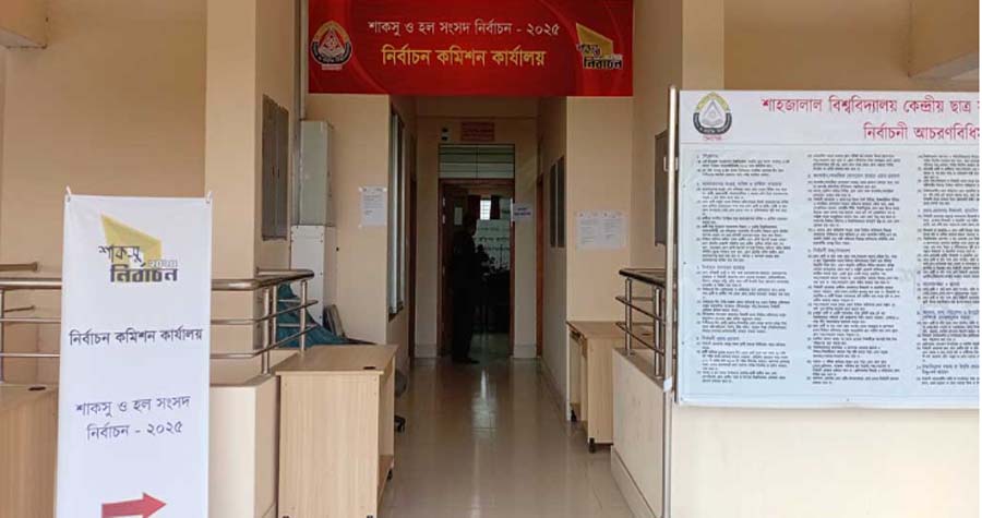 সিলেটের শাহজালাল বিজ্ঞান ও প্রযুক্তি বিশ্ববিদ্যালয়ের কেন্দ্রীয় ছাত্র সংসদ (শাকসু) ও হল সংসদ নির্বাচন স্থগিত করেছেন হাইকোর্ট। আগামীকাল মঙ্গলবার (২০ জানুয়ারি) শাকসু নির্বাচনের ভোট গ্রহণ অনুষ্ঠিত হওয়ার কথা ছিল।